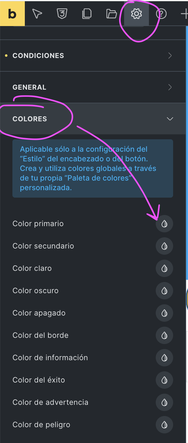 1. Crearemos nuestra paleta, iremos a la opción de ajustes, seleccionamos el apartado Colores.