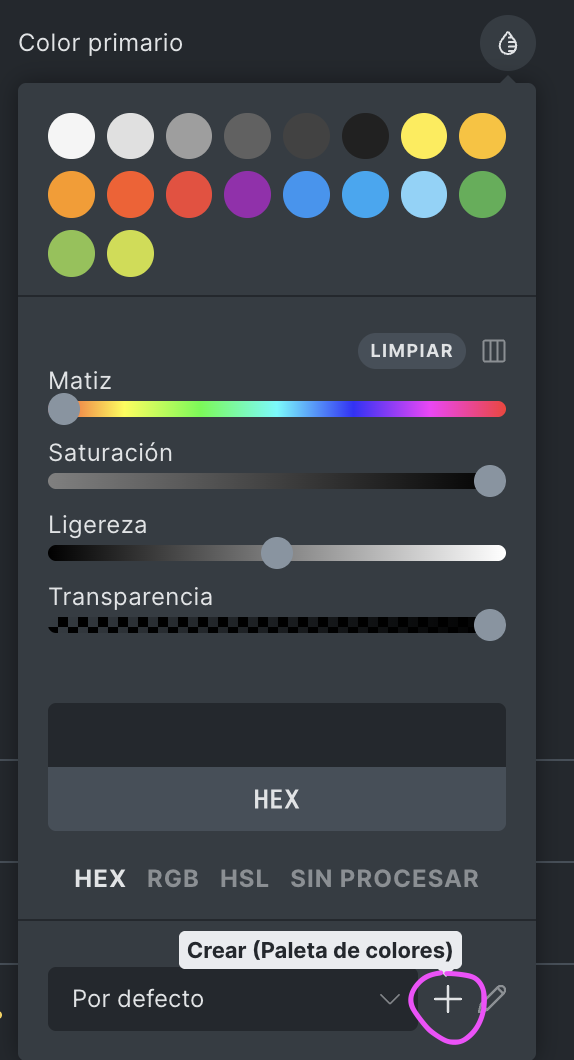 2. Creamos nuestra paleta, apretamos al símbolo +