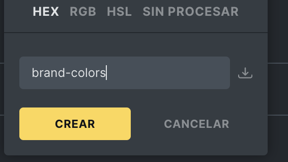 Una vez hemos importado nuestras variables en el paso anterior, podemos crear nuestra paleta cromática de colores para nuestro diseño.