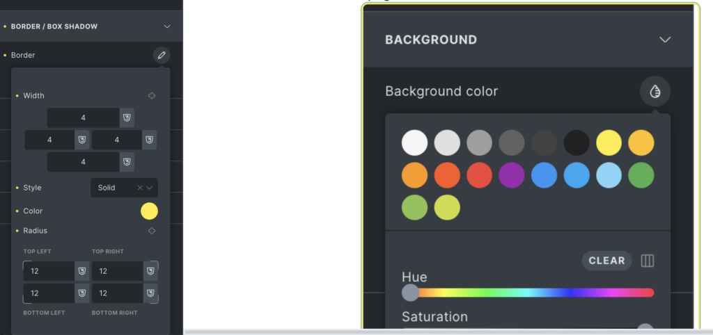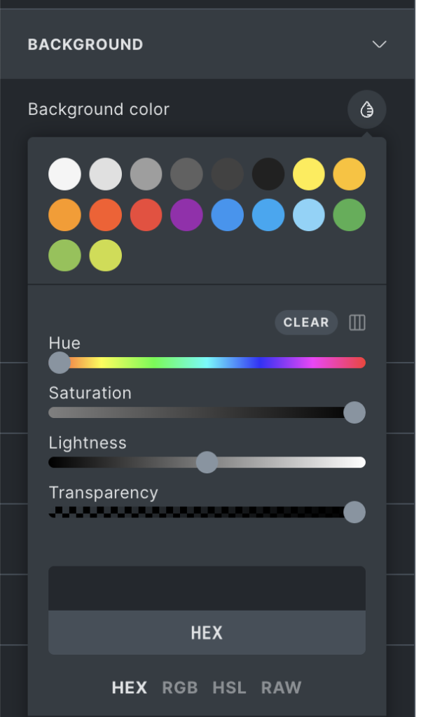 Como su nombre indica, se gestionan en este apartado los colores de fondo de cualquier elemento, bloques, contenedores, tipografías...