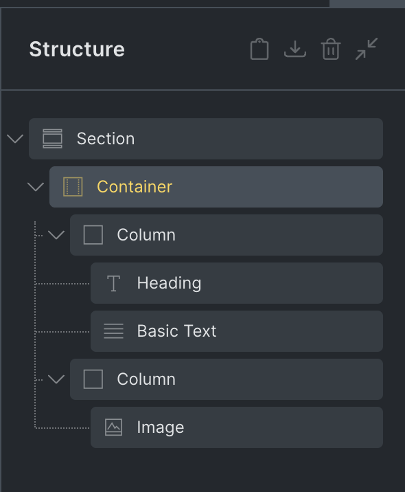 Por ejemplo montaríamos un section + Columnas y dentro de cada columna colocaremos H1, text, image,... según nuestro diseño. Ver vídeo de abajo ⬇️⬇️⬇️