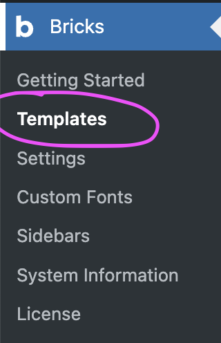 En el menú principal de Wordpress, iremos a la opción de Bricks >>>Templates